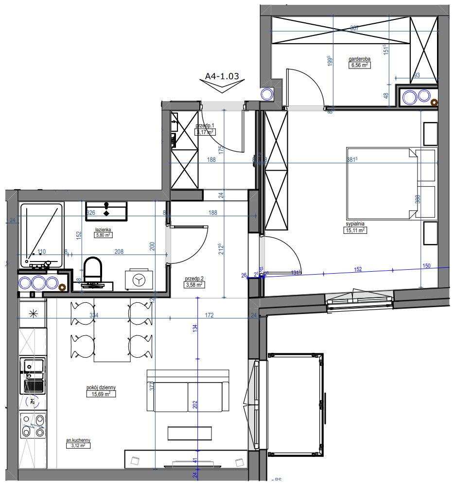 - aneks kuchenny - 3,12 m2