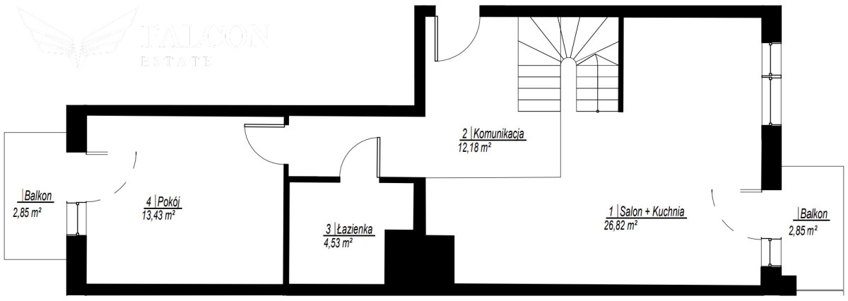 - Salon + Kuchnia 26,82 m2