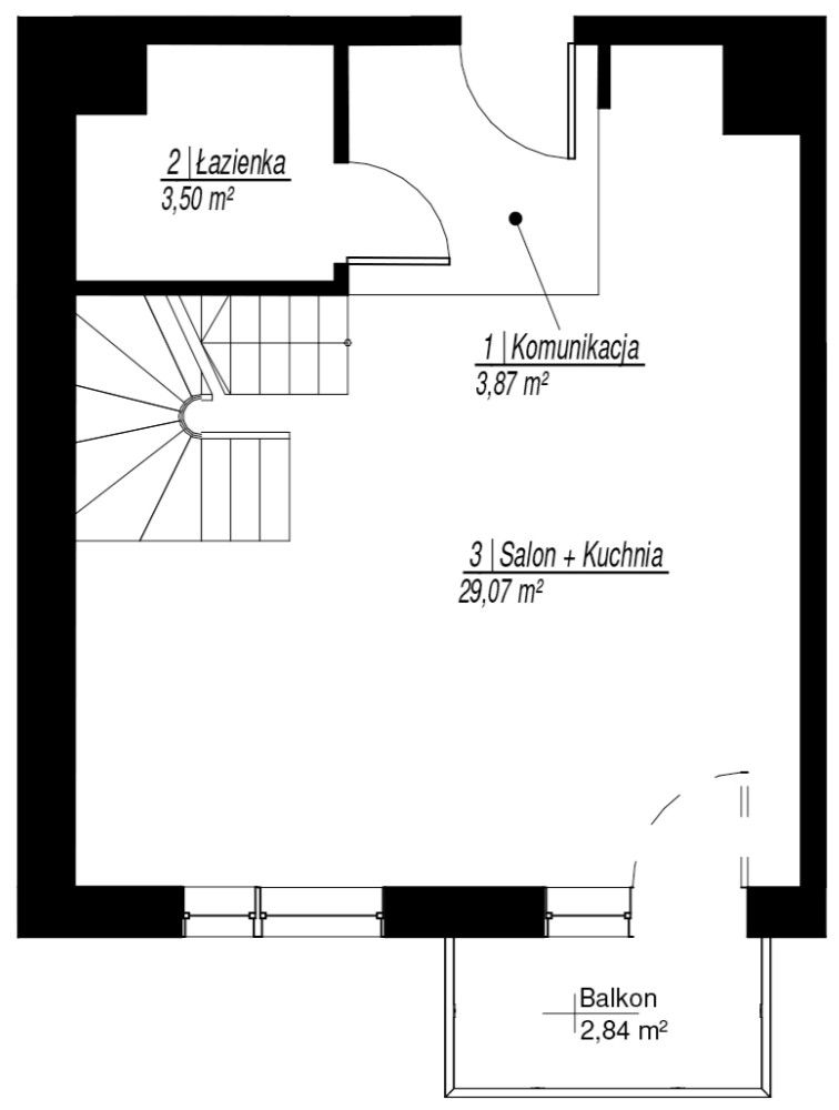 - pokój dzienny z aneksem kuchennym - 29,07 m2
