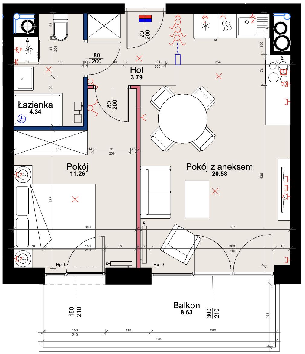 - pokój z aneksem kuchennym - 20,58 m2