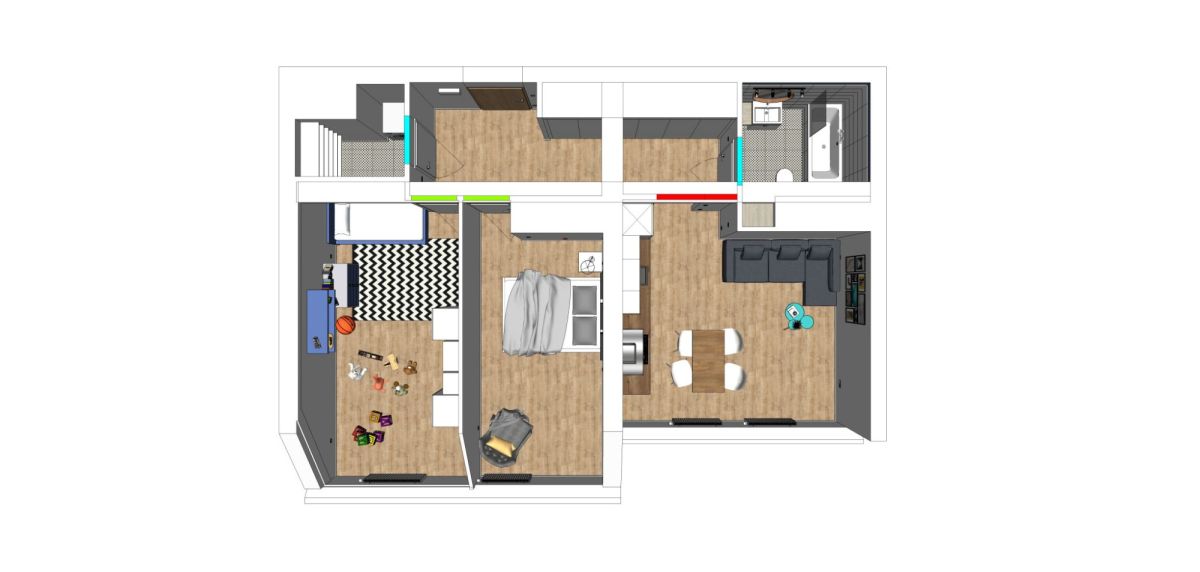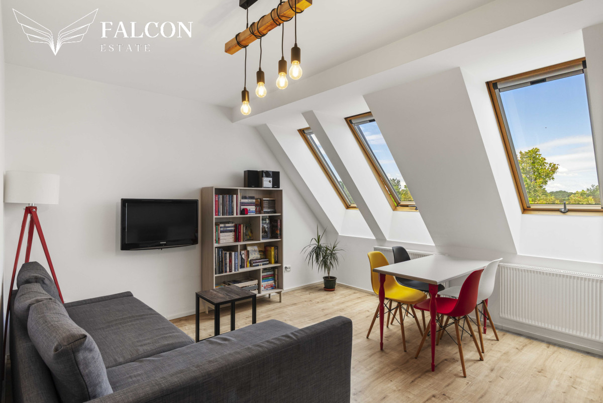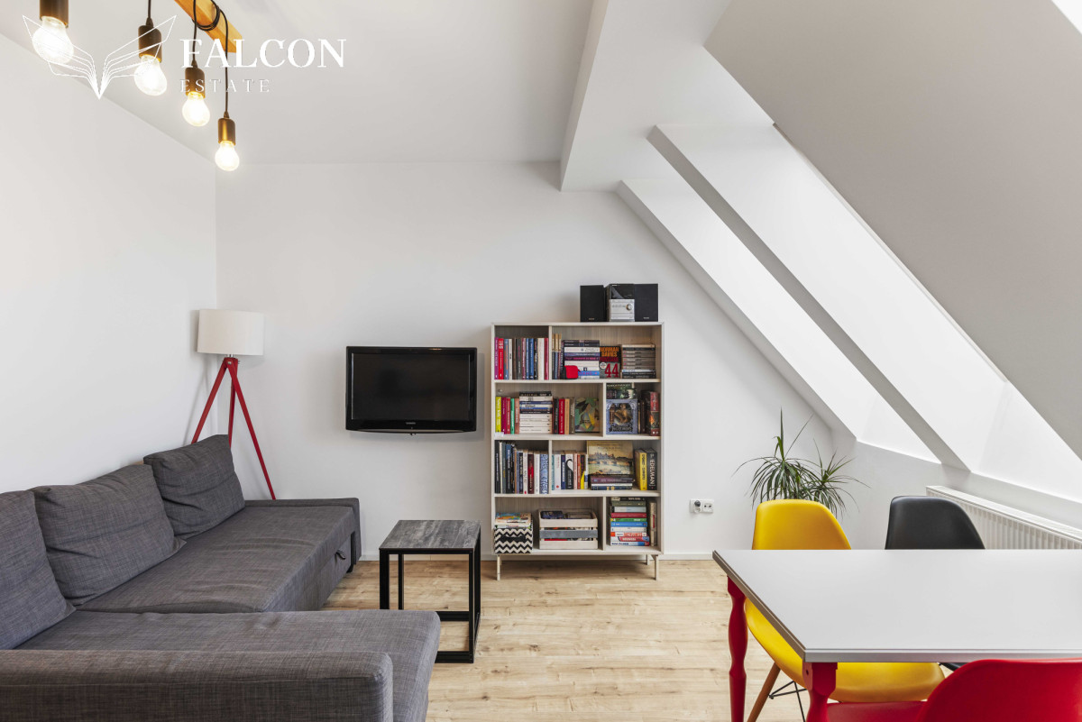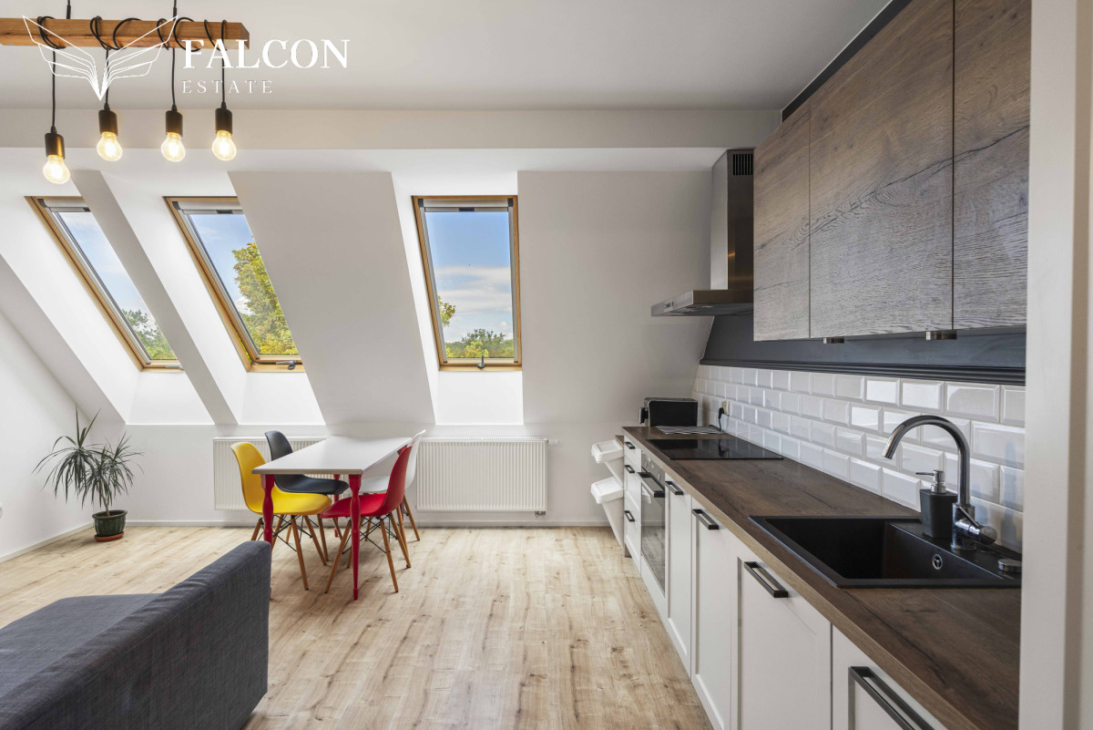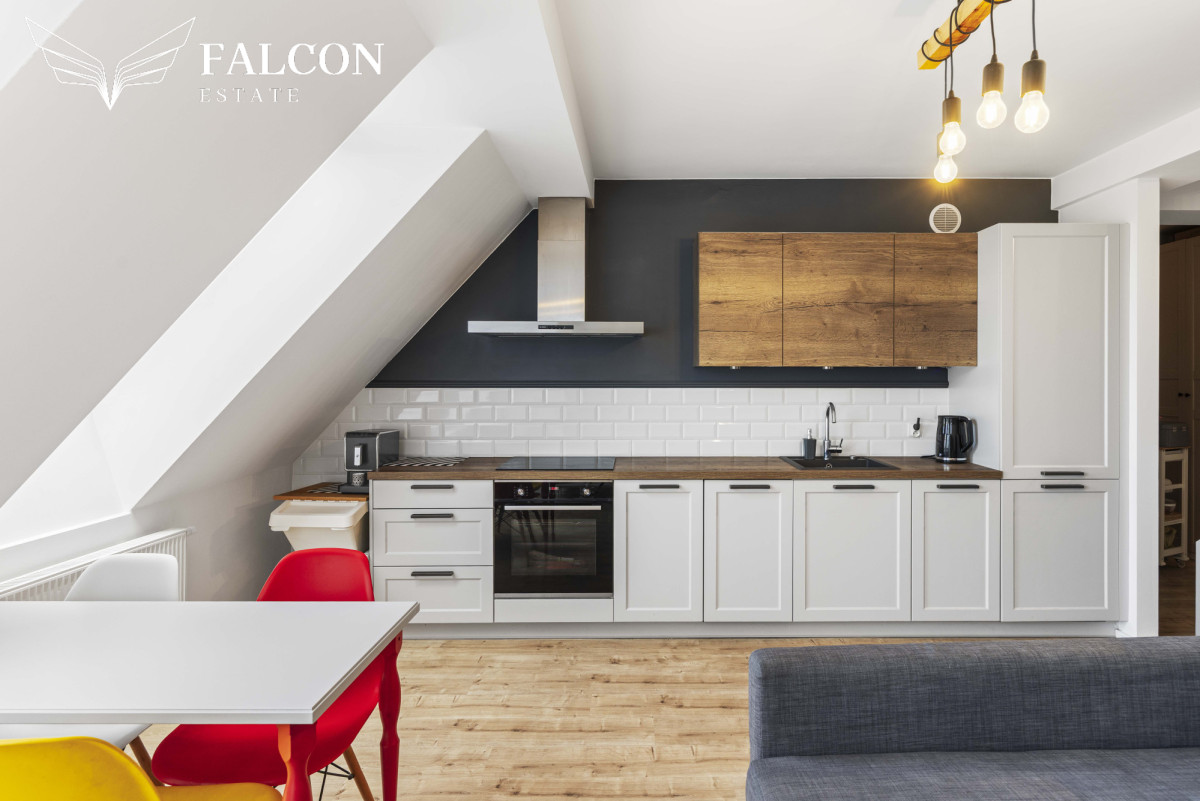 Powierzchnia użytkowa wg księgi wieczystej to 60,5 m², jednak faktyczna powierzchnia po podłodze wynosi ok. 68 m² - dzięki temu mieszkanie jest przestronne i wygodne w codziennym użytkowaniu. Przestrzeń została zaprojektowana tak, by skosy podkreślały jego unikatowy charakter, nie ograniczając jednocześnie funkcjonalności wnętrza.